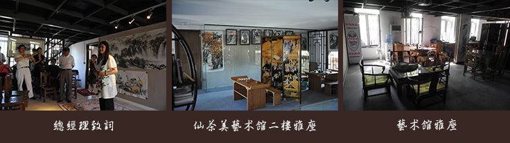 仙茶美艺术馆位于北京市通州区宋庄镇小堡村国防工事艺术区,是仙茶美集团公司自主经营的艺术馆,馆内集中收藏并展售了仙茶美集团公司董事长谭郁俊先生多年收藏的艺术品以及公司签约艺术家的作品。馆藏艺术品涵盖书画、陶瓷、玉石、古董器具等多个种类,且多为大师级经典作品,其中书画类有已故百岁著名艺术家阳太阳、中国美协名誉主席王琦、著名画家方凤富等名家的作品;陶瓷类有中国工艺美术大师晋佩章、中国工艺美术大师王芝文、中国工艺美术大师/中国陶瓷艺术大师鲍志强等名家作品;玉石类有中国工艺美术大师黎铿、中国工艺美术大师顾永骏等作品,可谓是精品荟萃。同时,艺术馆还是仙茶美集团公司演绎经典中国皇家茶文化的平台。